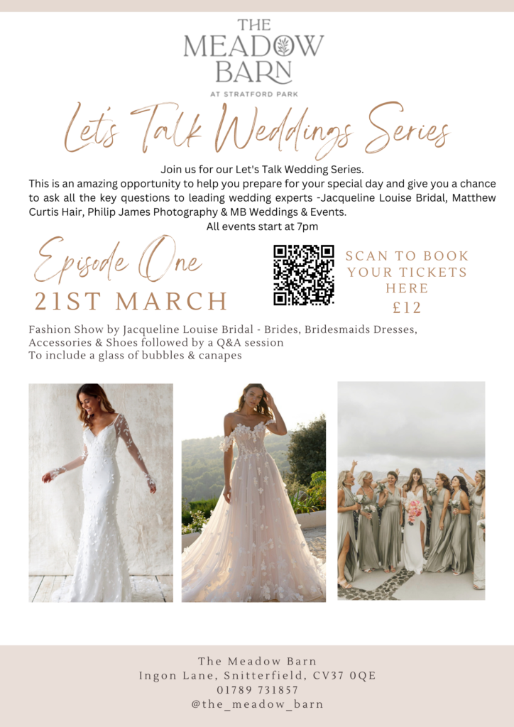 The Meadow Barn at The Stratford Park Hotel has teamed up with Jacqueline Louise Bridal to host a fashion show on Thursday, March 21 to showcase the latest bridal and bridesmaid dresses.
