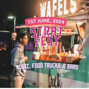 Bars will be open throughout StratFest, offering draught beer, cider and ales, prosecco, cocktails, water, soft drinks and more!